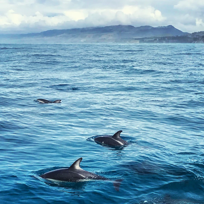 We arrived in Kaikoura almost exactly one month before a devastating earthquake struck the town. We were staying in a log cabin at a place called Lavender Farm, a short drive inland. I had no idea when we arrived if we’d get the chance to see whales or dolphins on our loop of the South Island, and since only a single boat seemed to be operating from the harbour and we only had a day, Joel and I jumped at it. We were very lucky, and were rewarded with a sighting of the largest pod of wild dusky dolphins our guide had ever seen.